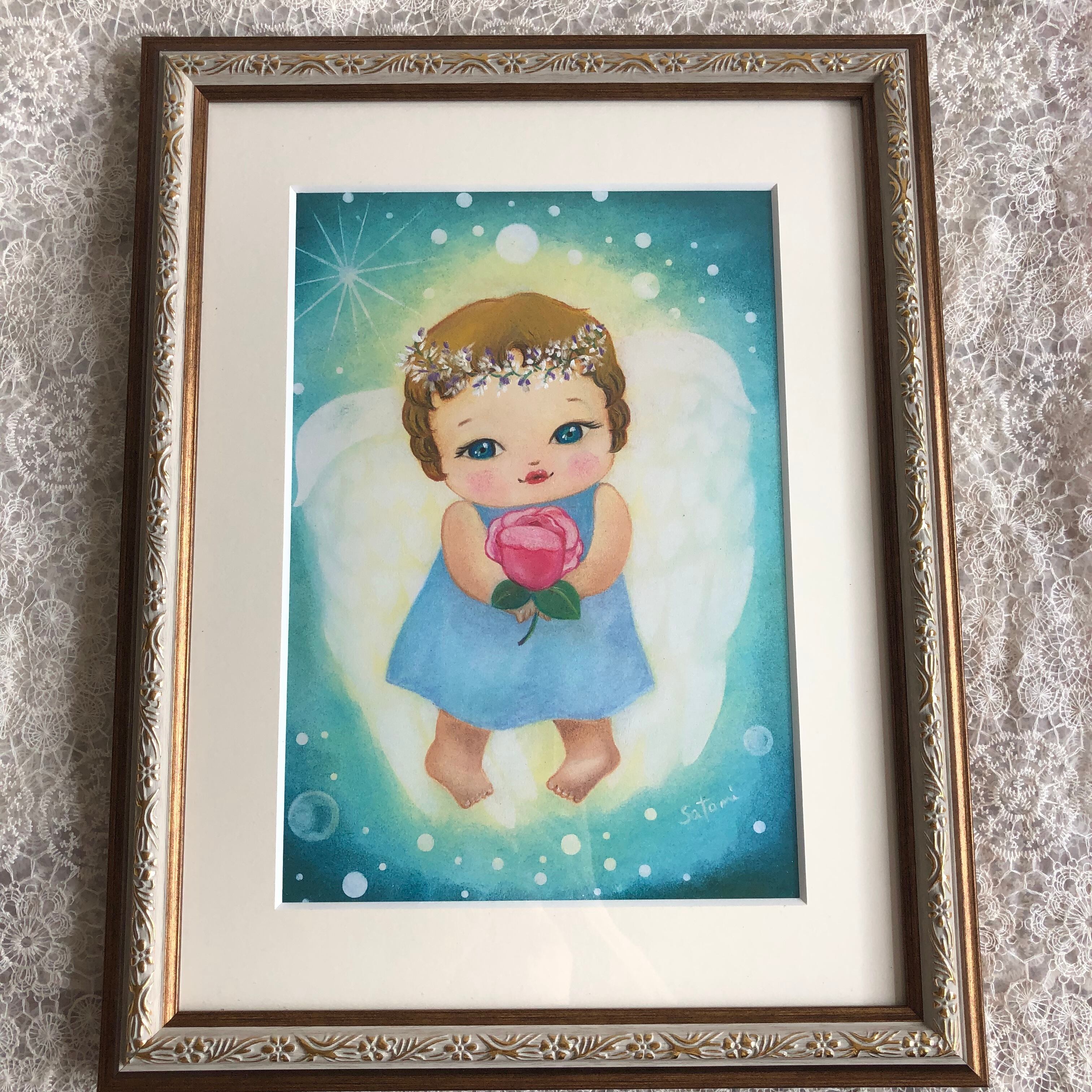パステルアート天使画【天使からハートに薔薇を】原画販売です。